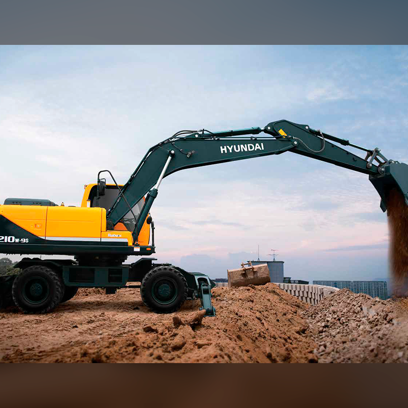La Hyundai R210W-9S es una excavadora sobre ruedas de alto rendimiento y precisión. Tiene un sistema de regeneración del brazo interior mejorado, una cabina de acero reforzada con tubos y una columna de dirección delgada con una extensión de 60 mm e inclinación de 30°. Además, su pantalla LCD a color de 7″ permite la fácil lectura de los indicadores del aceite hidráulico, temperatura del agua y combustible.